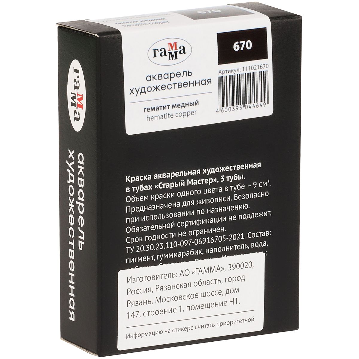 Акварель художественная Гамма "Старый Мастер", гематит медный, 9мл, туба