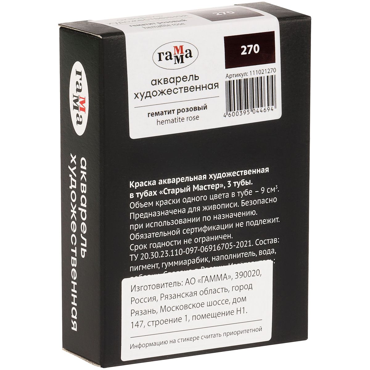 Акварель художественная Гамма "Старый Мастер", гематит розовый, 9мл, туба