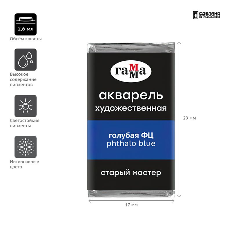 Акварель художественная Гамма "Старый Мастер" голубая ФЦ, 2,6мл, кювета