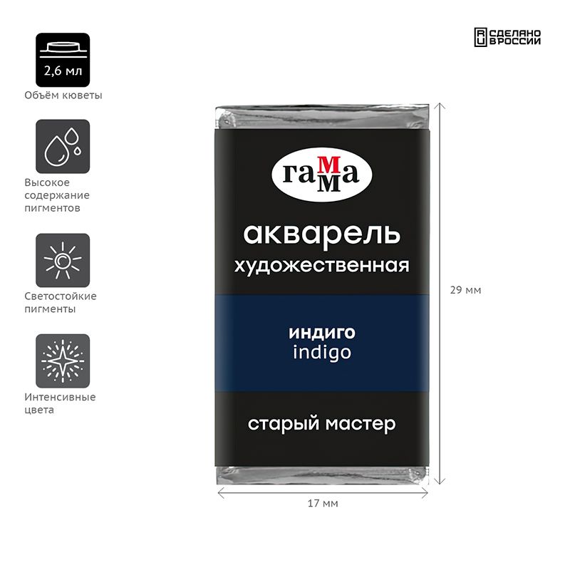 Акварель художественная Гамма "Старый Мастер" индиго, 2,6мл, кювета