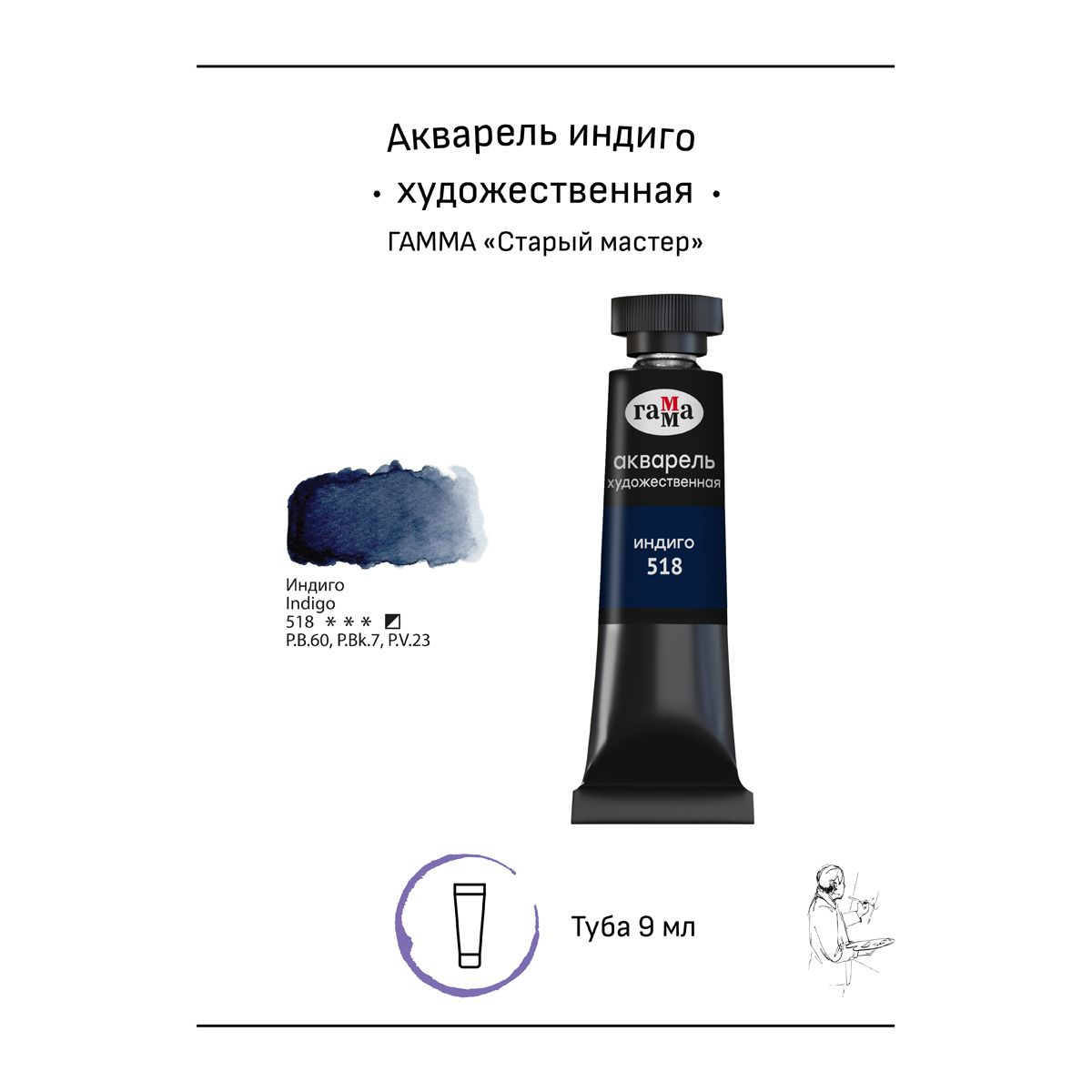 Акварель художественная Гамма "Старый мастер" индиго, 9мл, туба