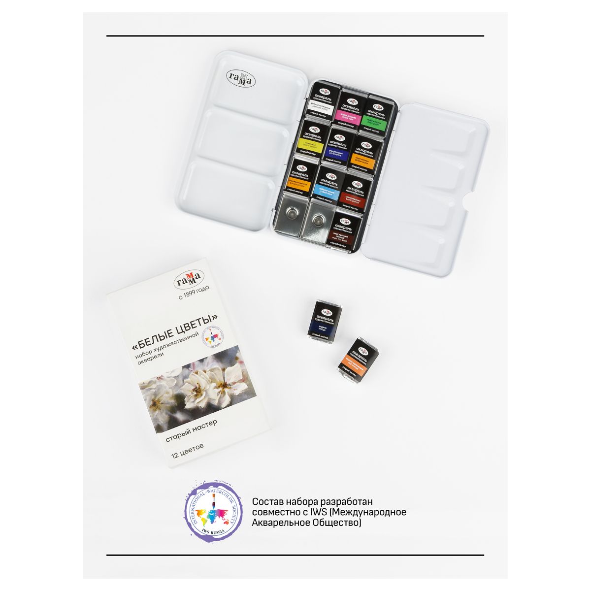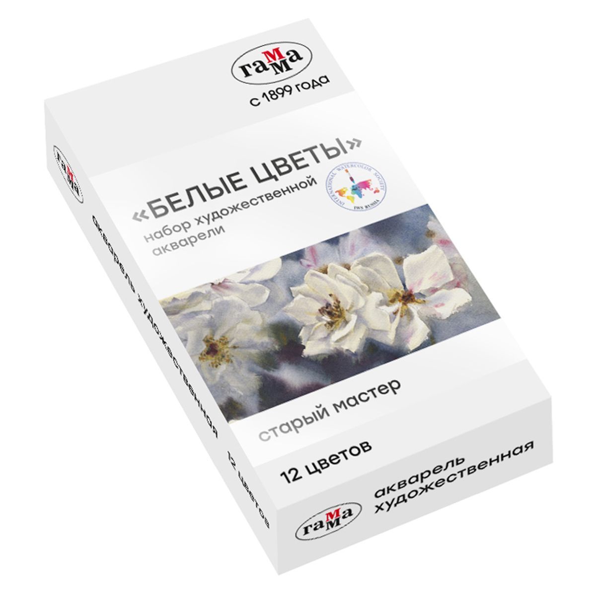 Акварель художественная Гамма "Старый Мастер" IWS "Белые цветы", 12цв*2,6мл, кюветы, метал. коробка