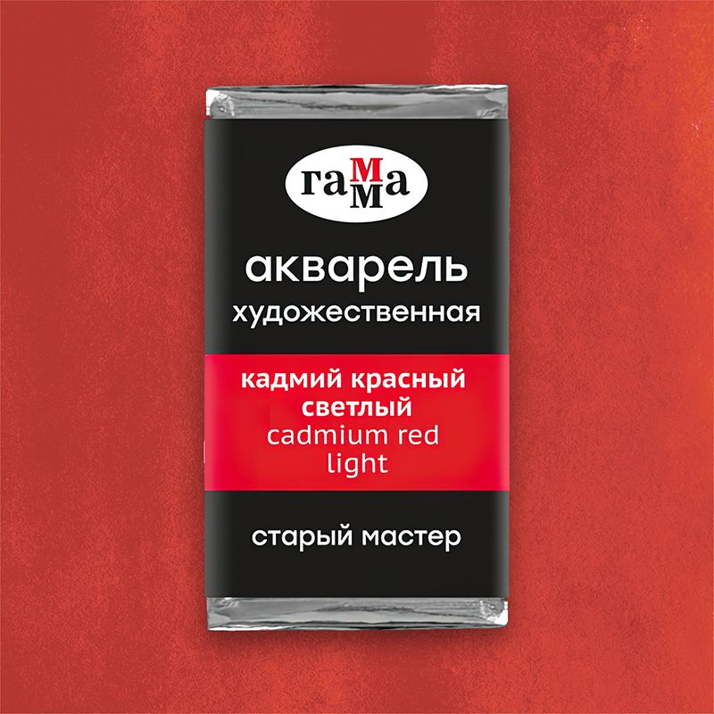 Акварель художественная Гамма "Старый Мастер" кадмий красный светлый, 2,6мл, кювета