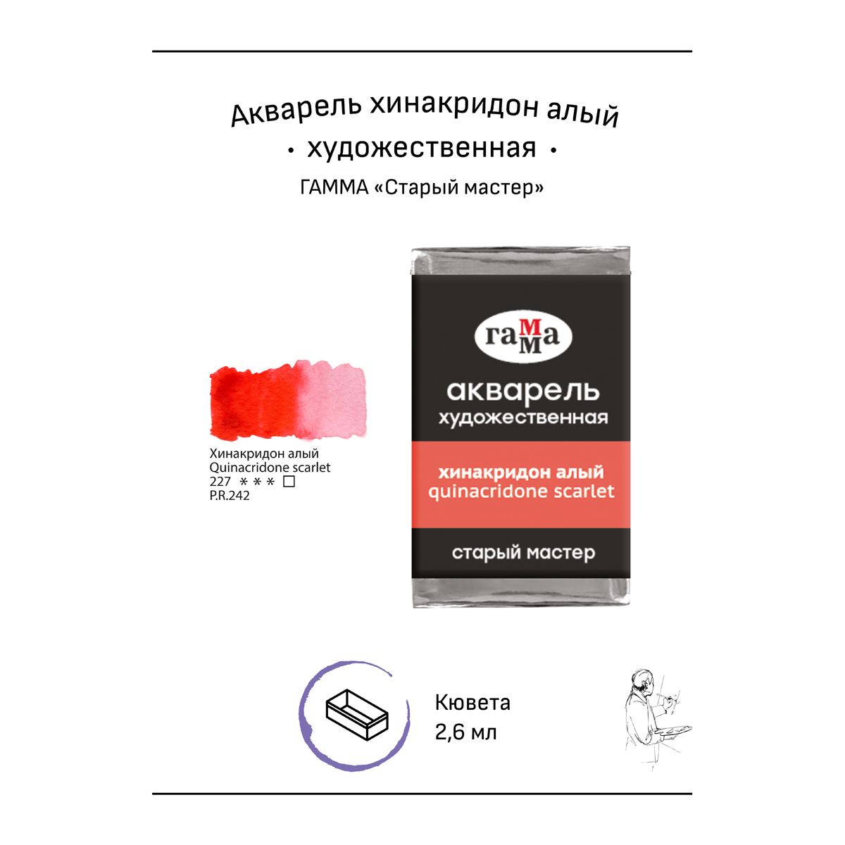 Акварель художественная Гамма "Старый мастер" хинакридон алый, 2,6мл, кювета