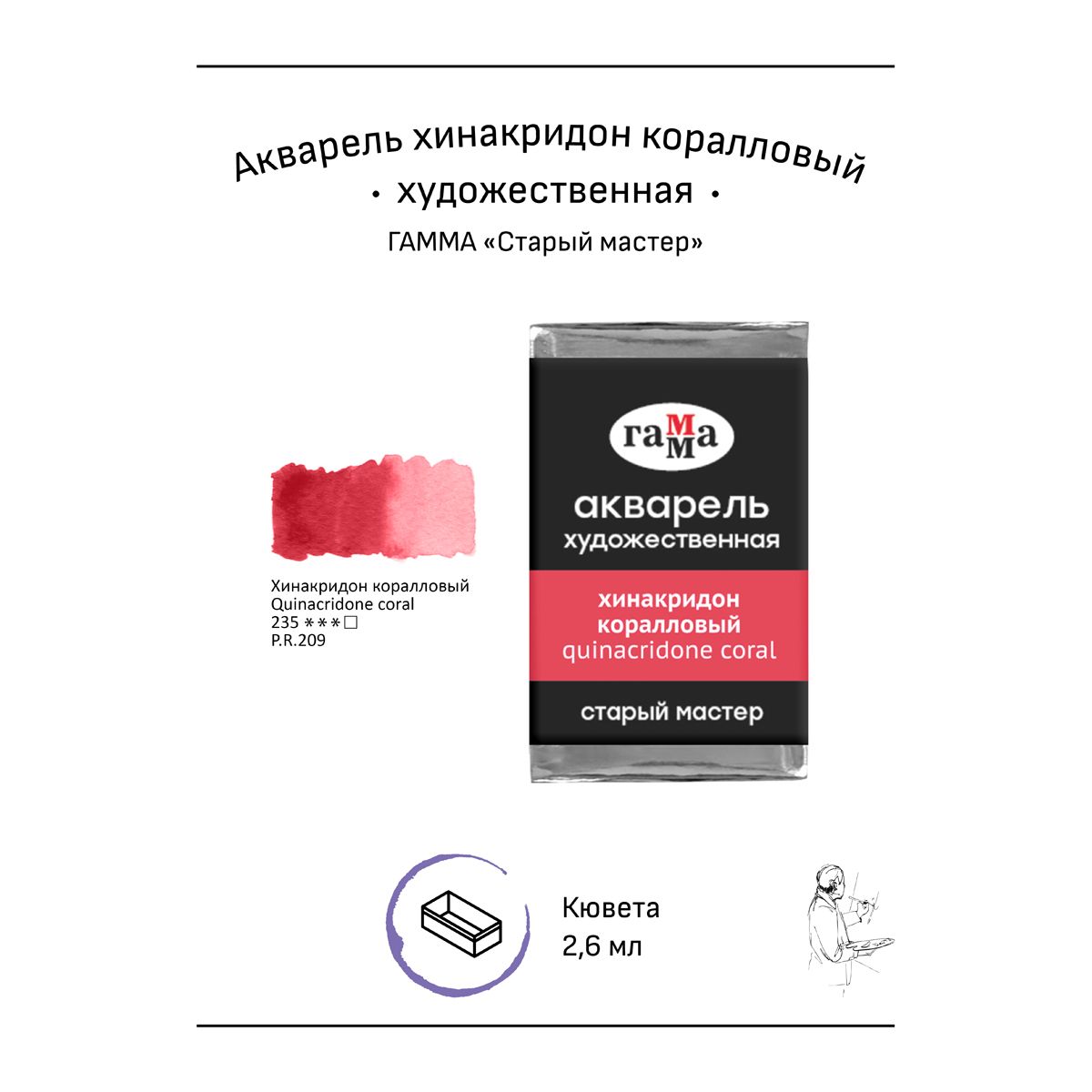 Акварель художественная Гамма "Старый мастер" хинакридон коралловый, 2,6мл , кювета