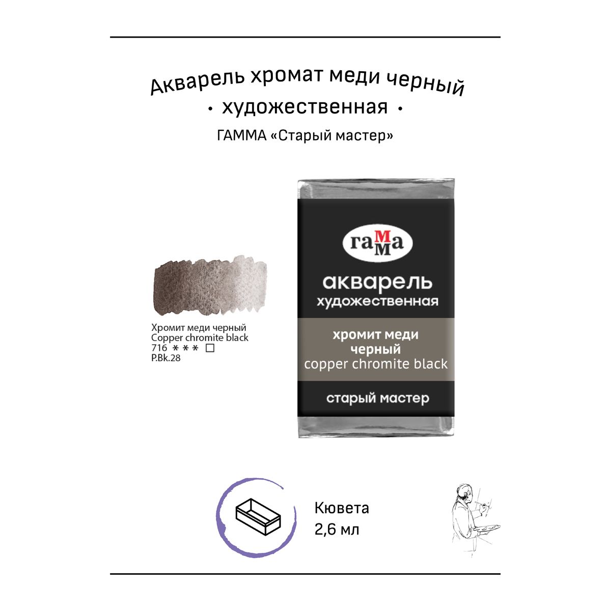 Акварель художественная Гамма "Старый мастер" хромит меди черный, 2,6мл, кювета