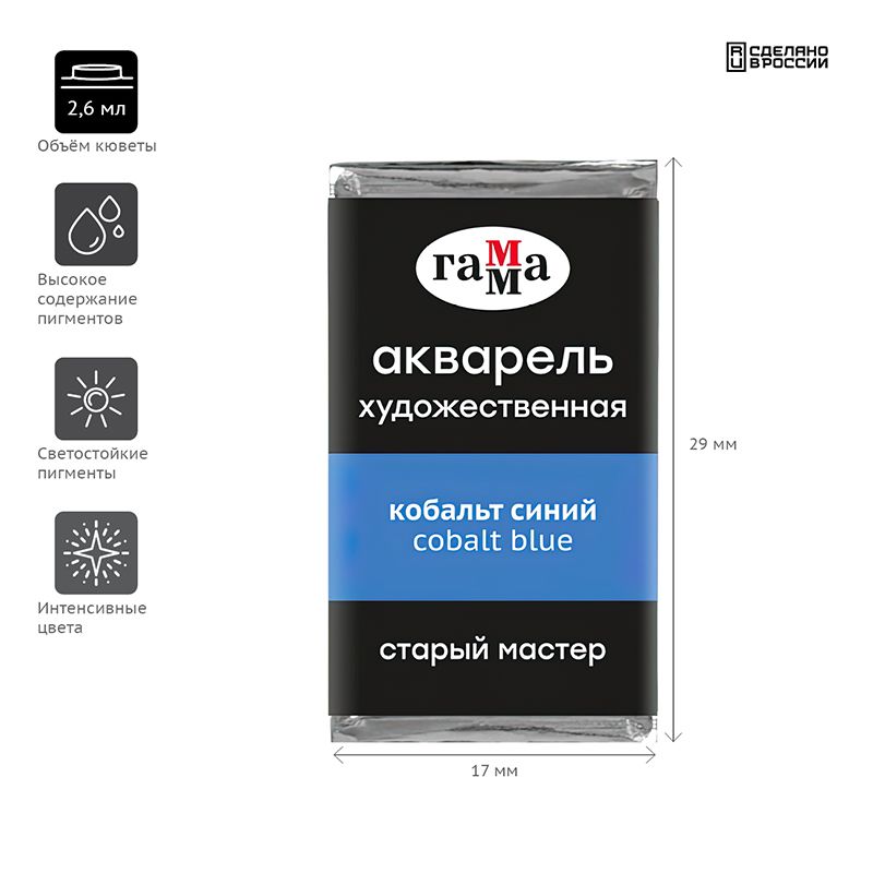 Акварель художественная Гамма "Старый Мастер" кобальт синий, 2,6мл, кювета