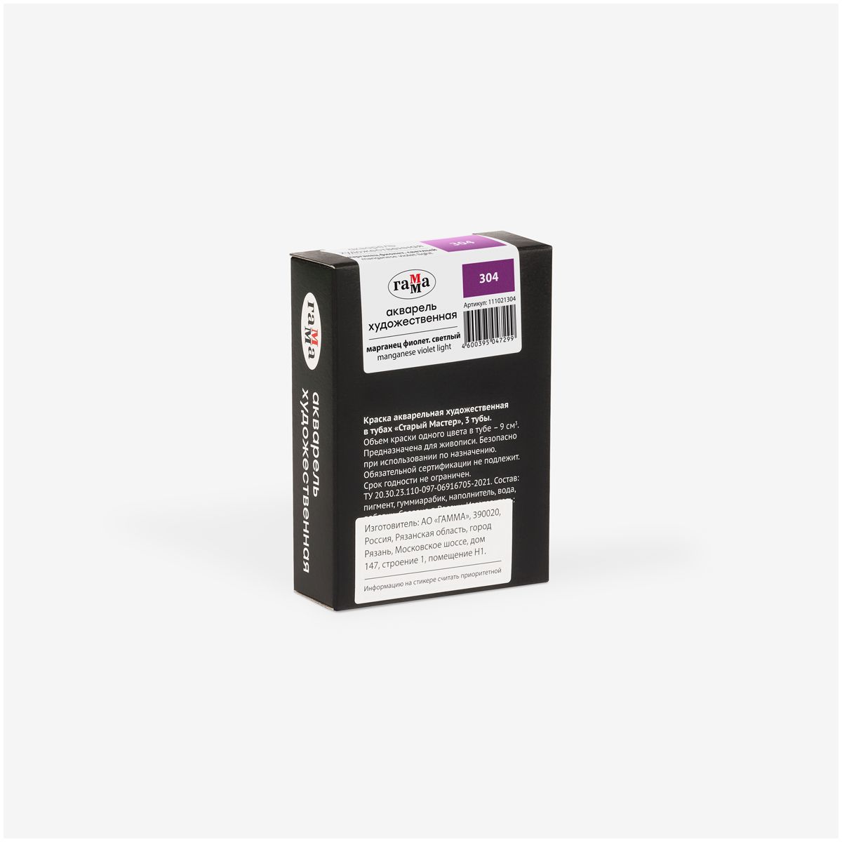 Акварель художественная Гамма "Старый мастер" марганец фиолетовый светлый, 9мл, туба
