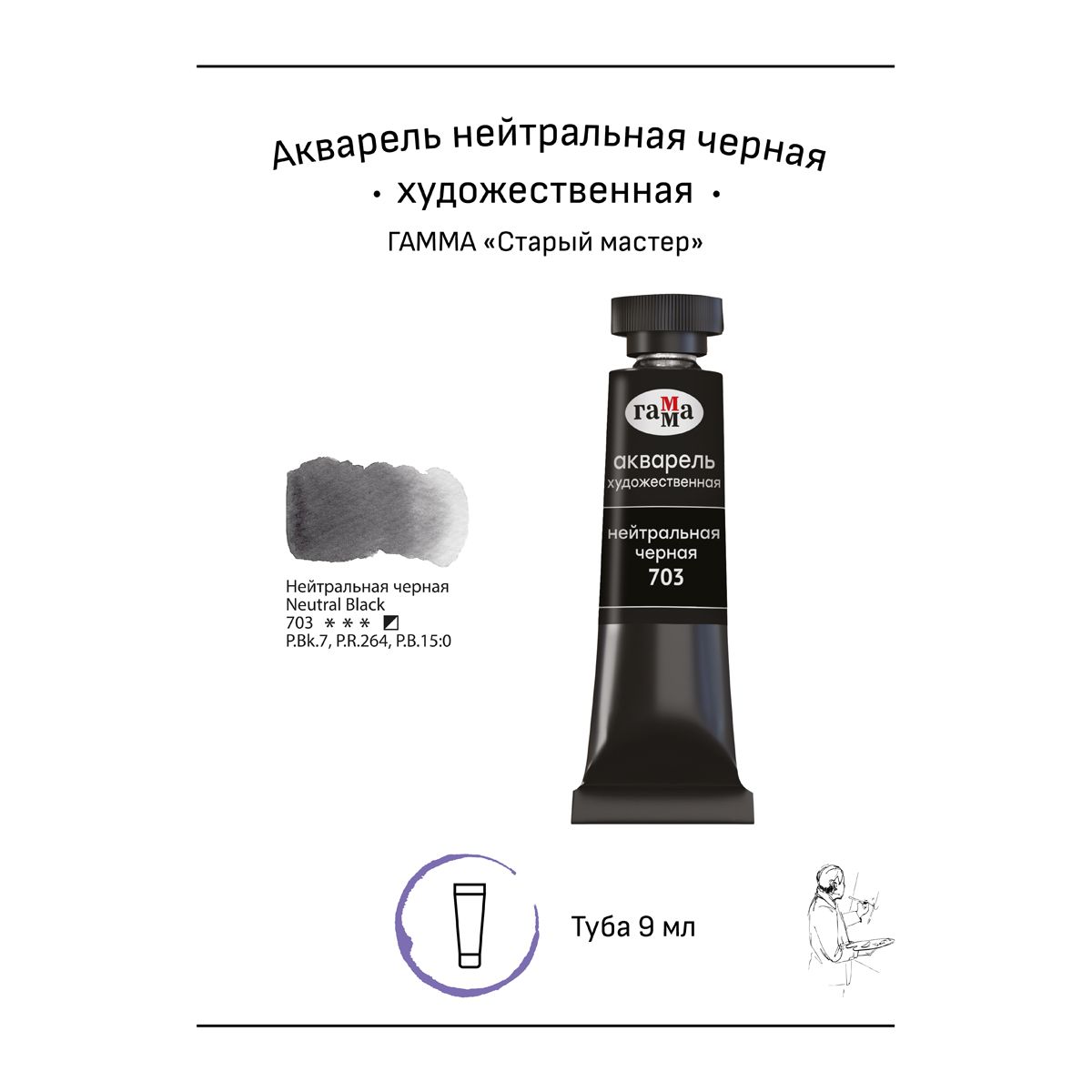 Акварель художественная Гамма "Старый мастер" нейтральная черная, 9мл, туба