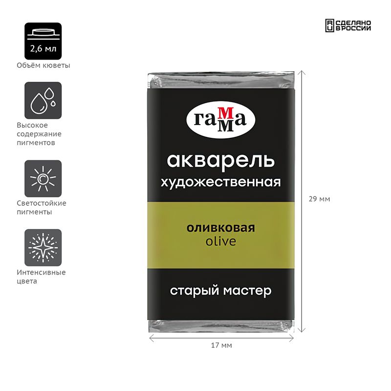 Акварель художественная Гамма "Старый Мастер" оливковая, 2,6мл, кювета