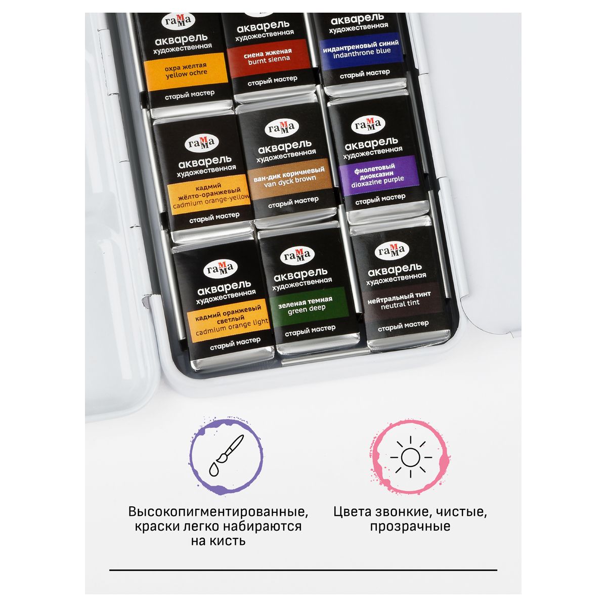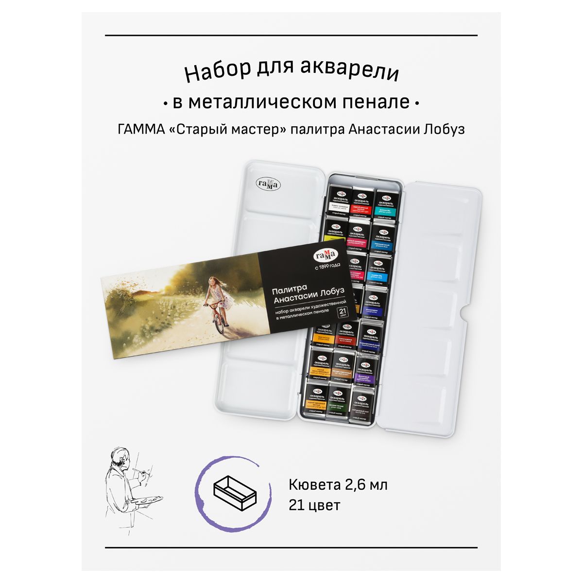 Акварель художественная Гамма "Старый Мастер" палитра Анастасии Лобуз, 21цв*2,6мл, кюветы, метал. коробка