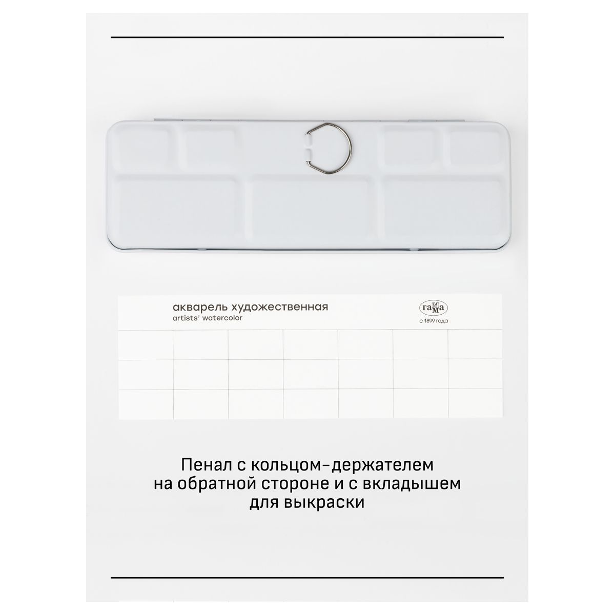 Набор представлен в металлическом пенале с удобными креплениями кювет, палитрой и кольцом-держателем на обратной стороне. Иллюстрация для упаковки предоставлена Анастасией Лобуз.