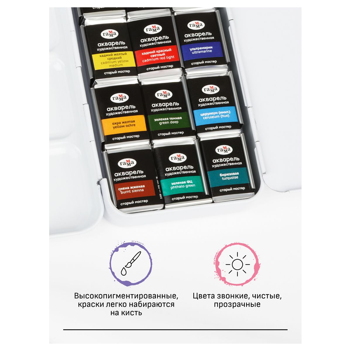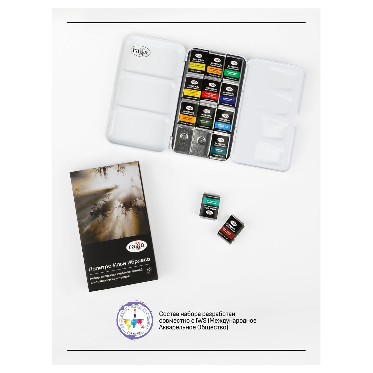 Акварель художественная Гамма "Старый Мастер" палитра Ильи Ибряева, 12цв*2,6мл, кюветы, метал. кор