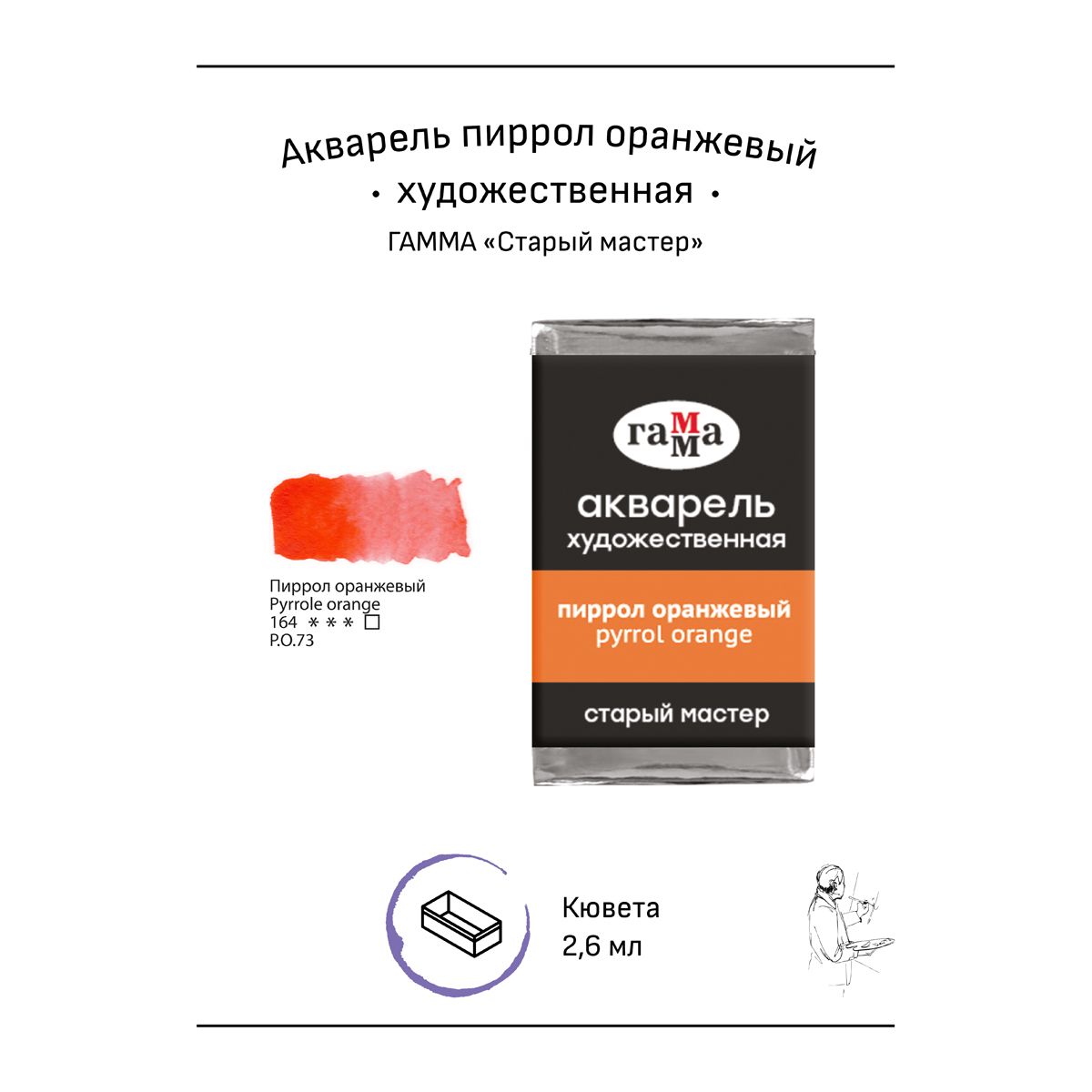 Акварель художественная Гамма "Старый мастер" пиррол оранжевый, 2,6мл, кювета