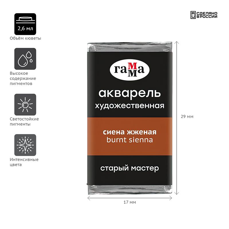 Акварель художественная Гамма "Старый Мастер" сиена жженая, 2,6мл, кювета
