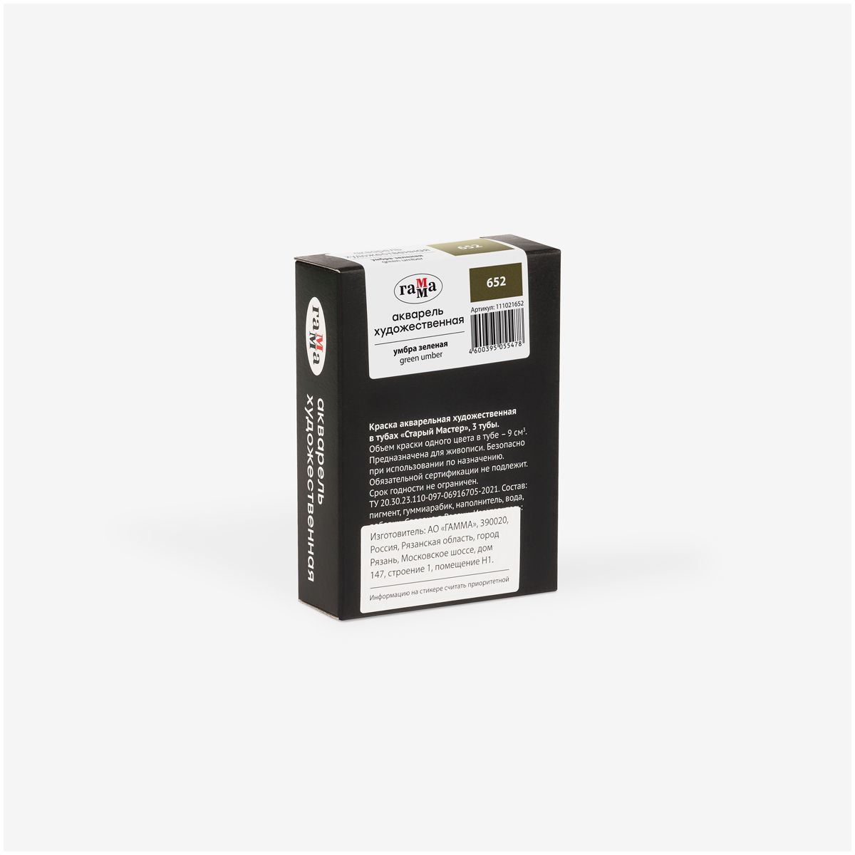 Акварель художественная Гамма "Старый Мастер" умбра зеленая, 9мл, туба