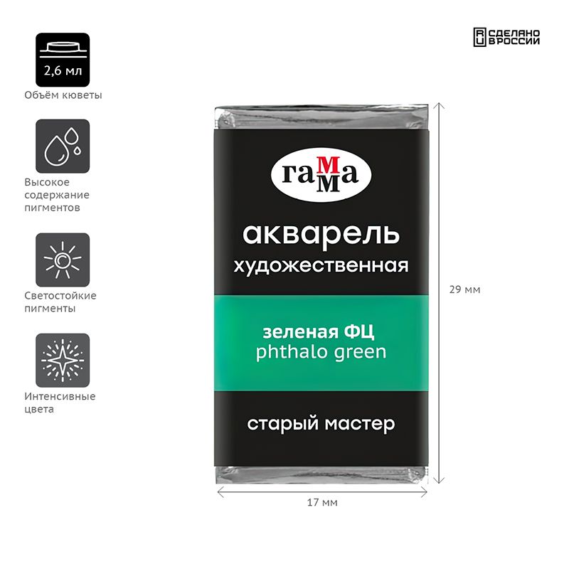 Акварель художественная Гамма "Старый Мастер" зеленая ФЦ, 2,6мл, кювета