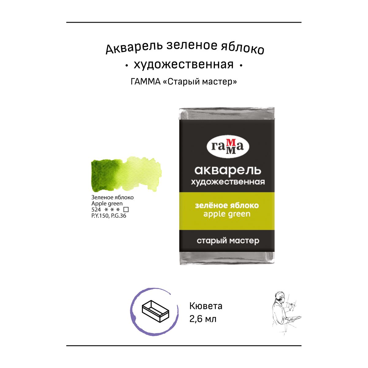 Акварель художественная Гамма "Старый мастер" зеленое яблоко, 2,6мл, кювета