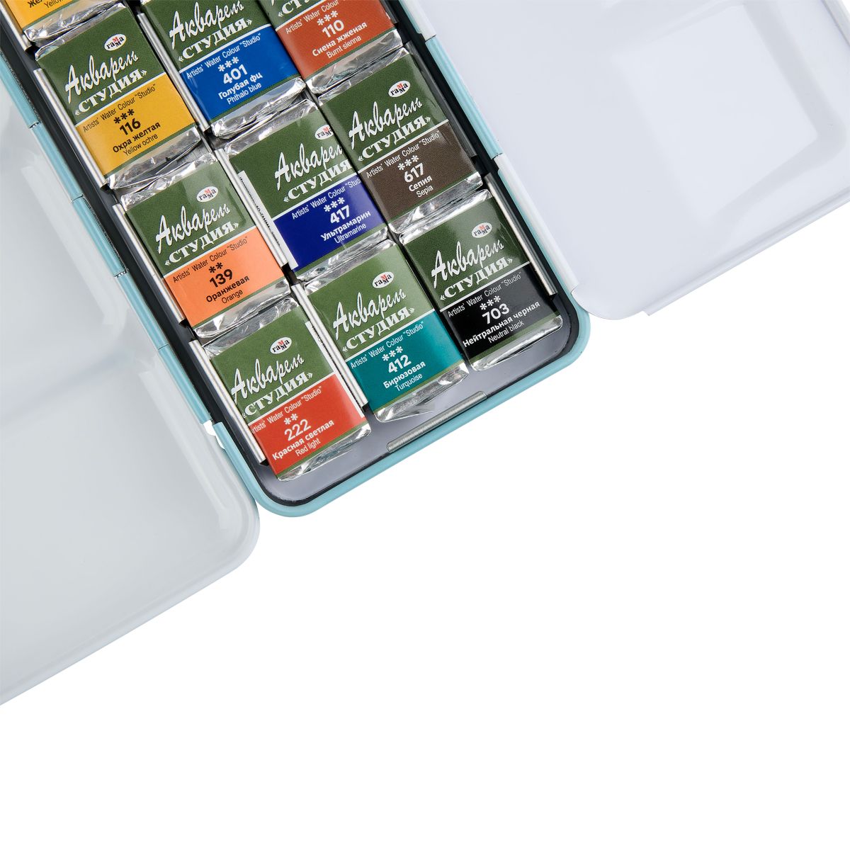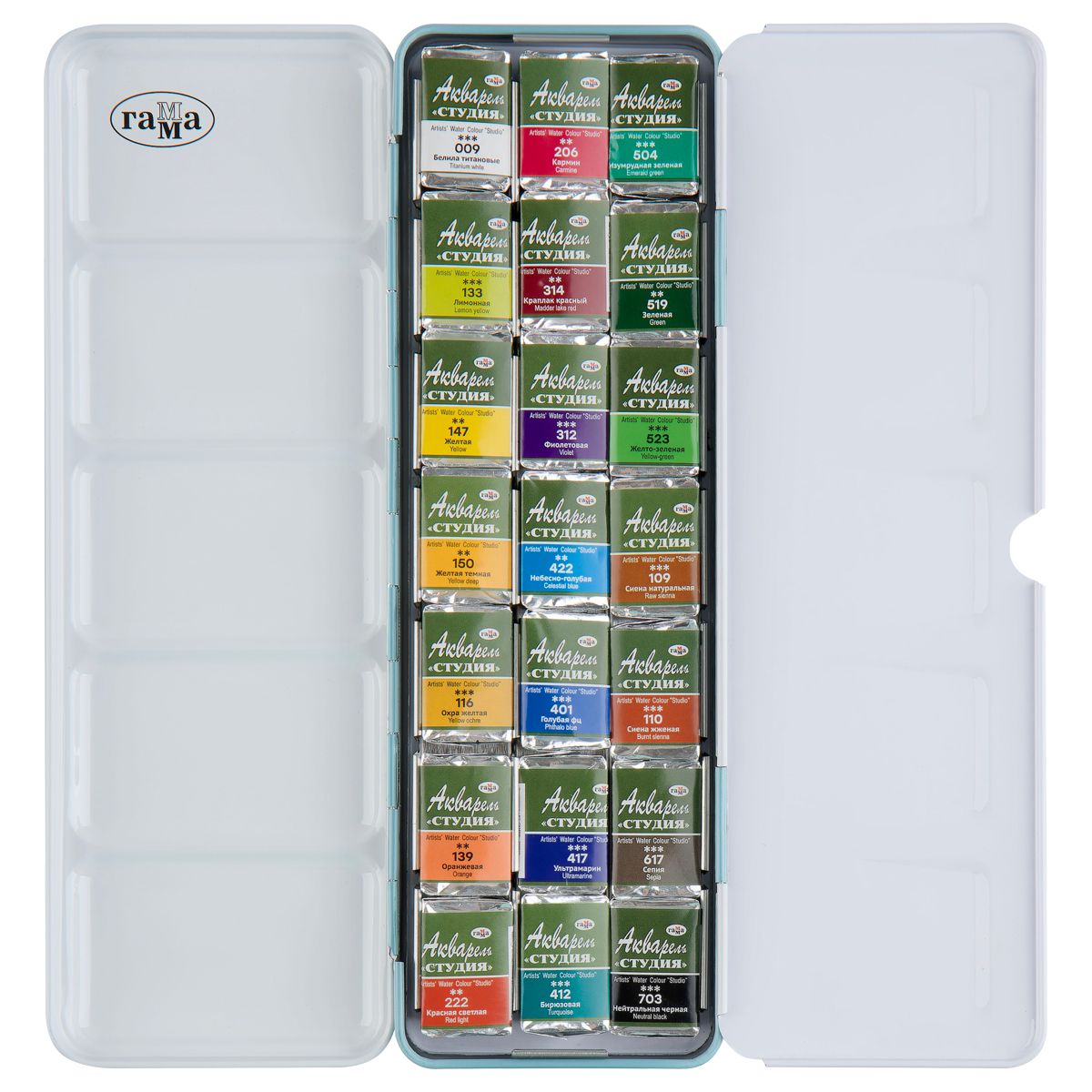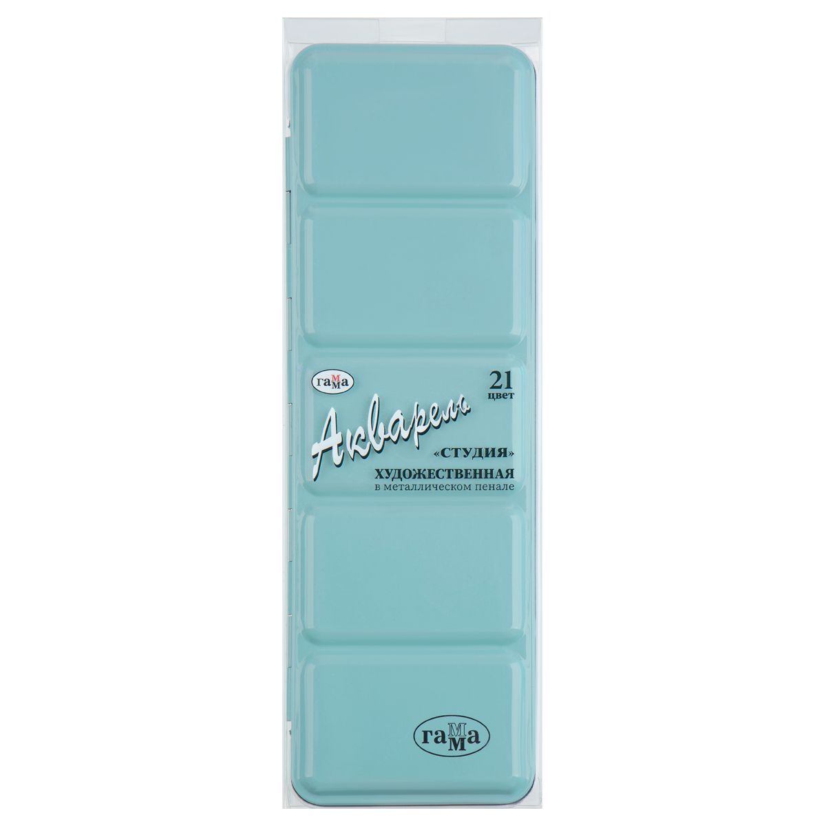 Акварель художественная Гамма "Студия", 21 цв., 2,6 мл , кювета, метал. Коробка