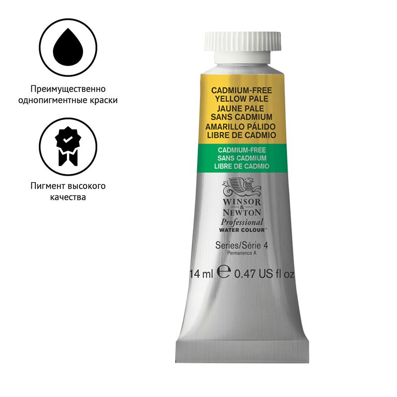 Акварель художественная Winsor&Newton "Professional", 14мл, туба, желтый бледный бескадмиевый