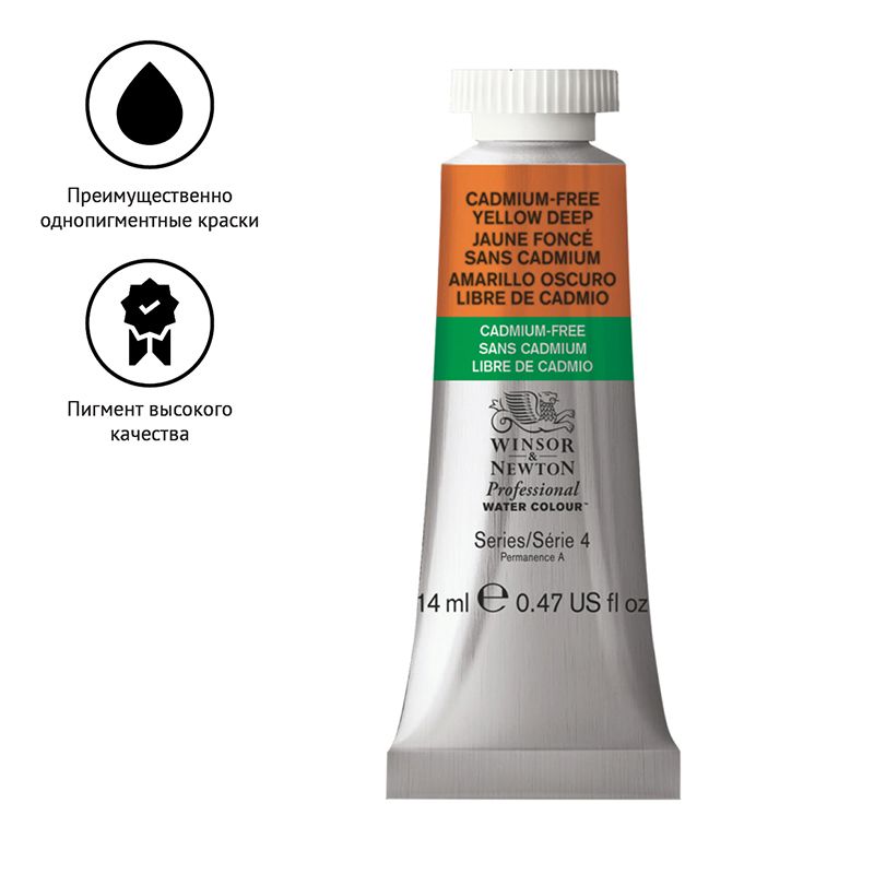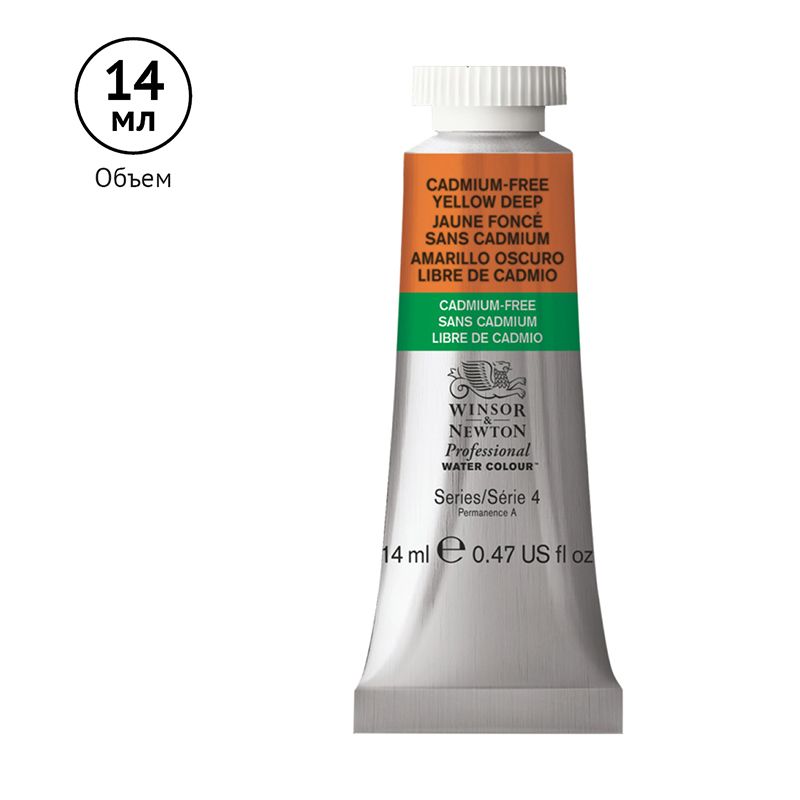 Акварель художественная Winsor&Newton "Professional", 14мл, туба, желтый темный бескадмиевый