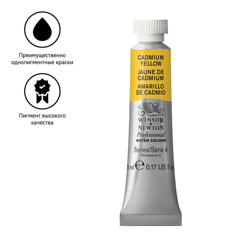 Акварель художественная Winsor&Newton "Professional", 5мл, туба, №108 кадмий желтый