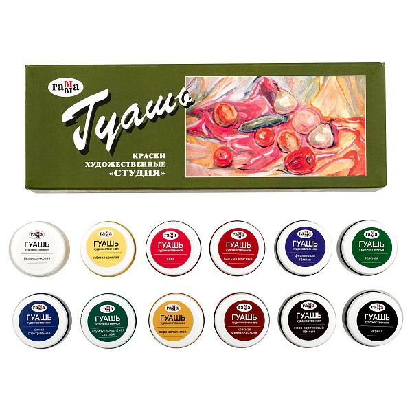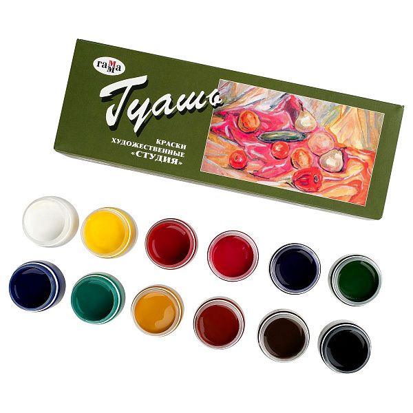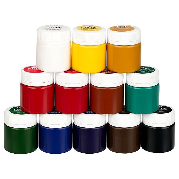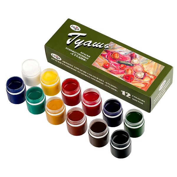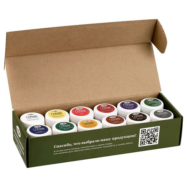 - Наборы гуашевых красок — от 6 до 24 цветов, включая базовые и дополнительные оттенки, особенно популярны в образовательной среде.