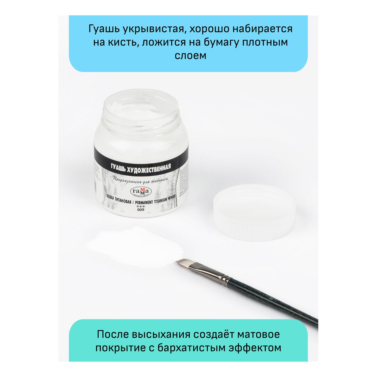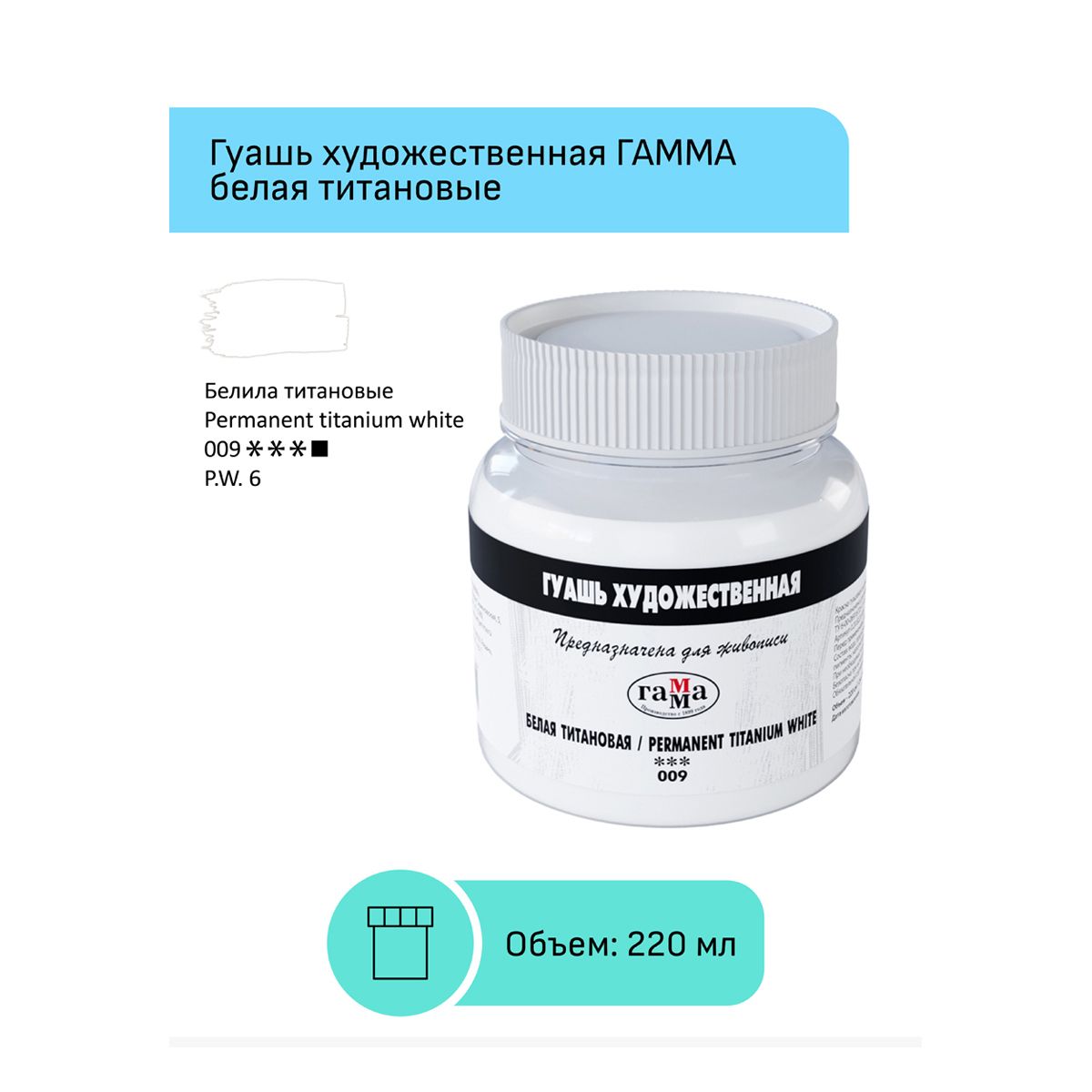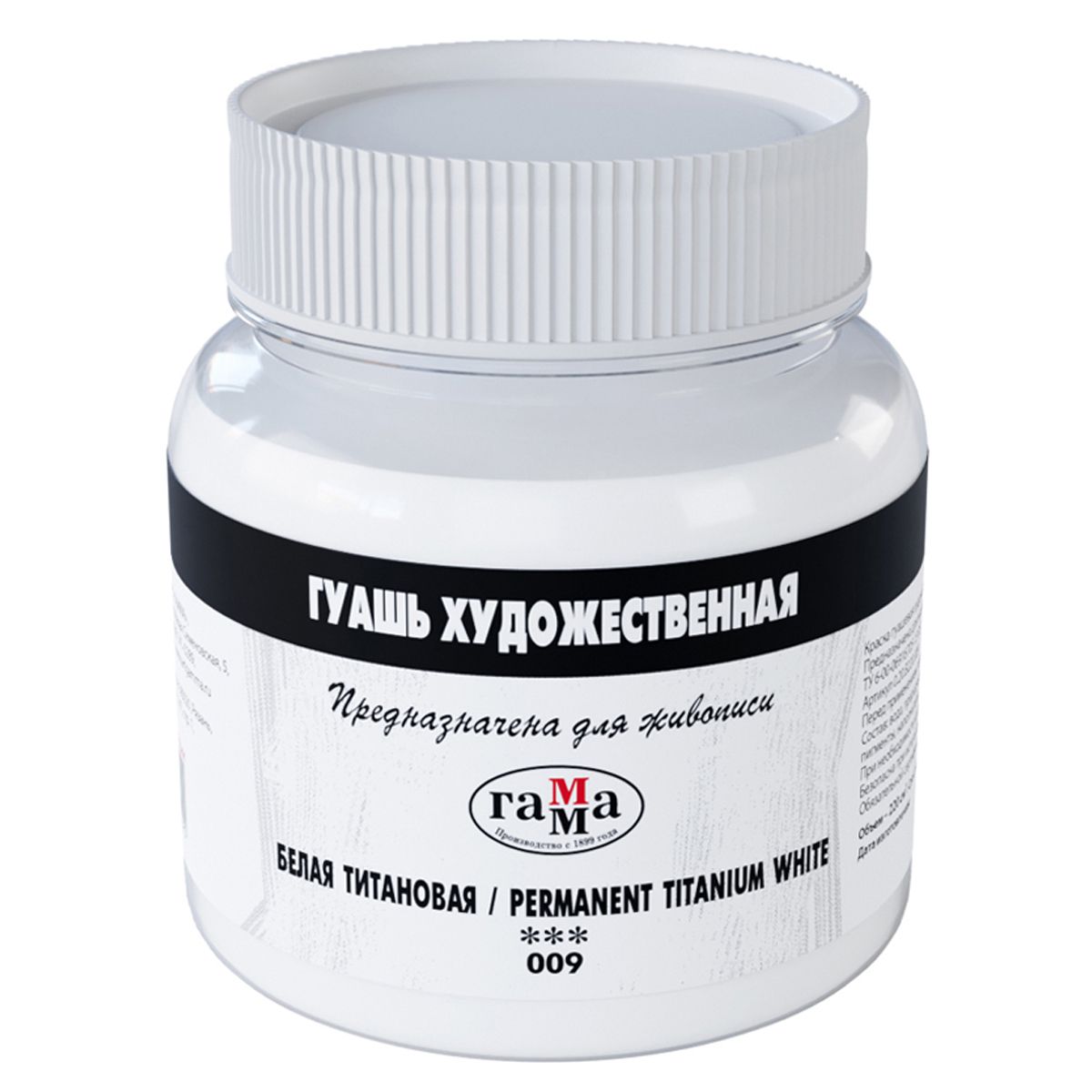 Гуашь художественная Гамма, белая титановая, 220мл