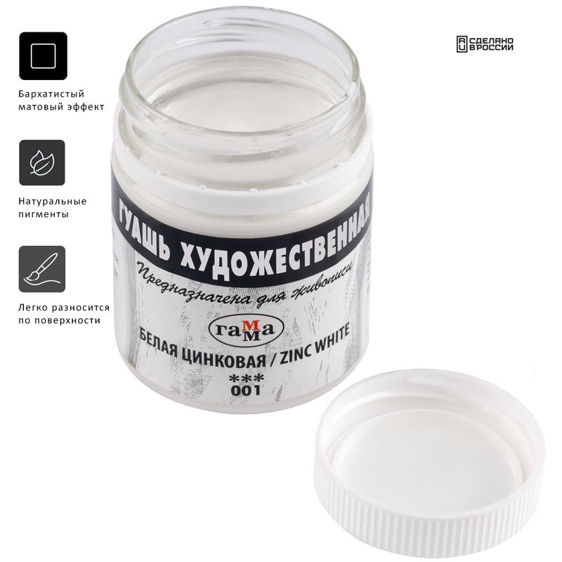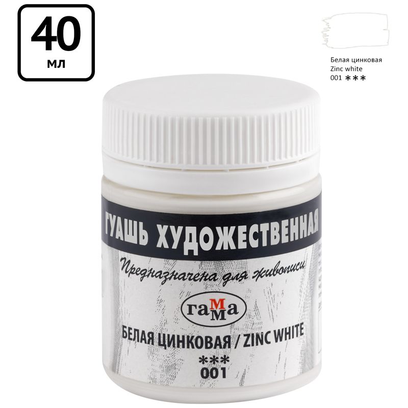 Гуашь художественная Гамма, белая цинковая, 40мл