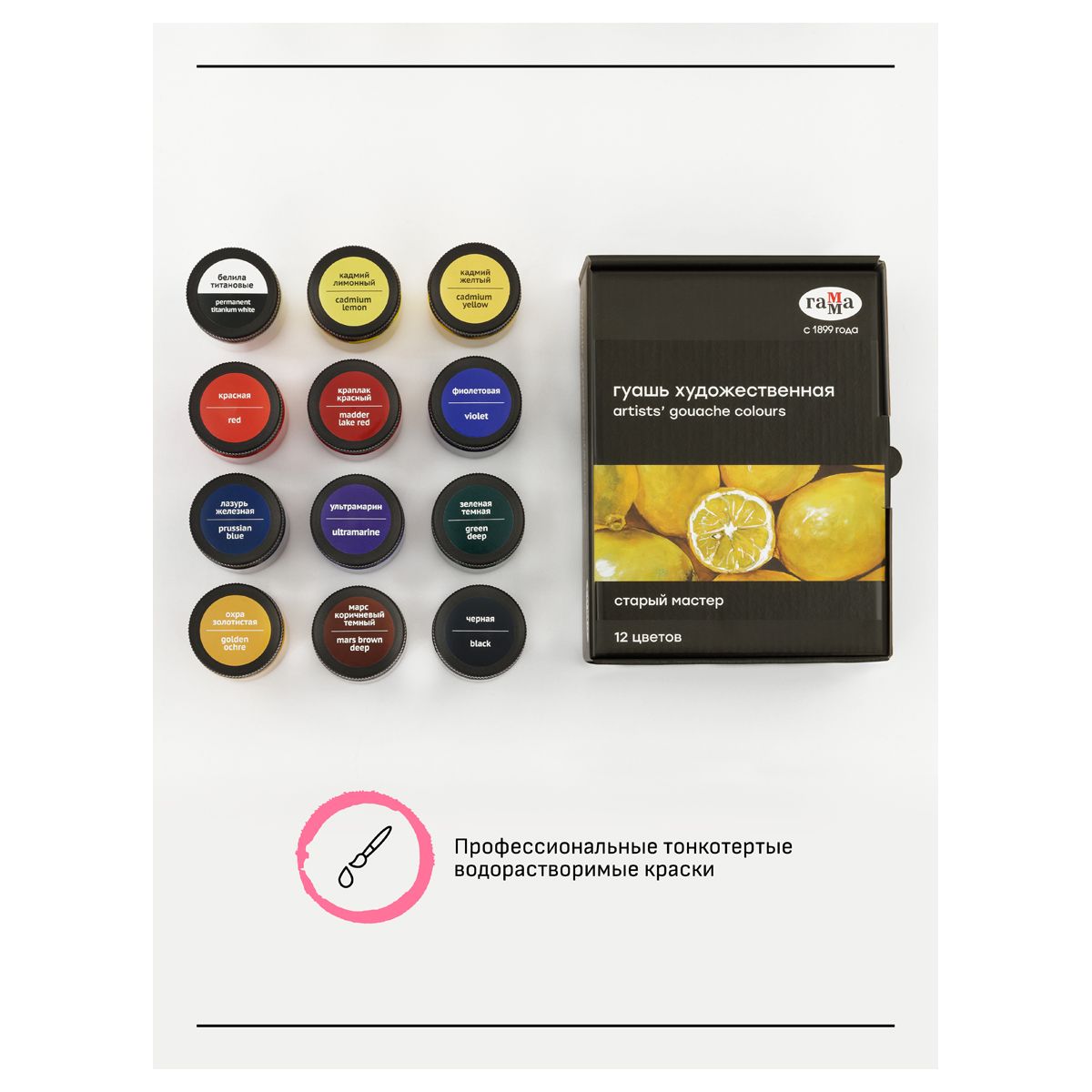 Гуашь художественная Гамма "Старый мастер", 12 цветов, 40мл, картон. упаковка