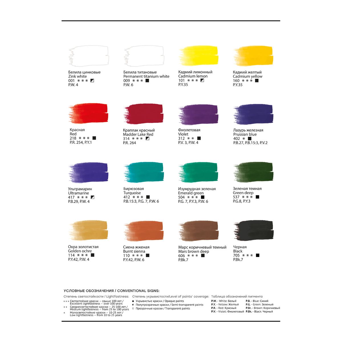 Гуашь художественная «Старый Мастер» – профессиональные тонкотертые водорастворимые краски. Гуашь имеет уникальную рецептуру, разработанную в собственной исследовательской лаборатории завода совместно с художниками. Краска легко наносится на поверхность, благодаря специальным добавкам она сохраняет яркость цвета после высыхания. Профессиональная гуашь создает плотный бархатный слой. Изготовлена из традиционных художественных пигментов, в том числе кадмиево-кобальтовой группы. Набор упакован в картонную коробку.