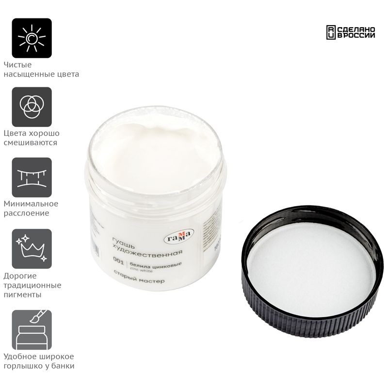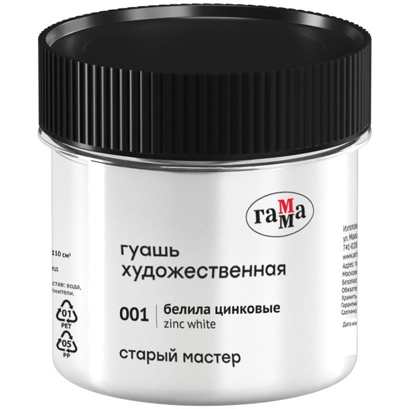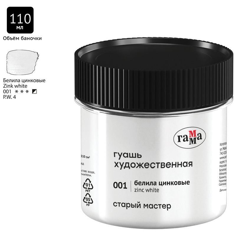 Гуашь художественная Гамма "Старый Мастер", белила цинковые, 110мл
