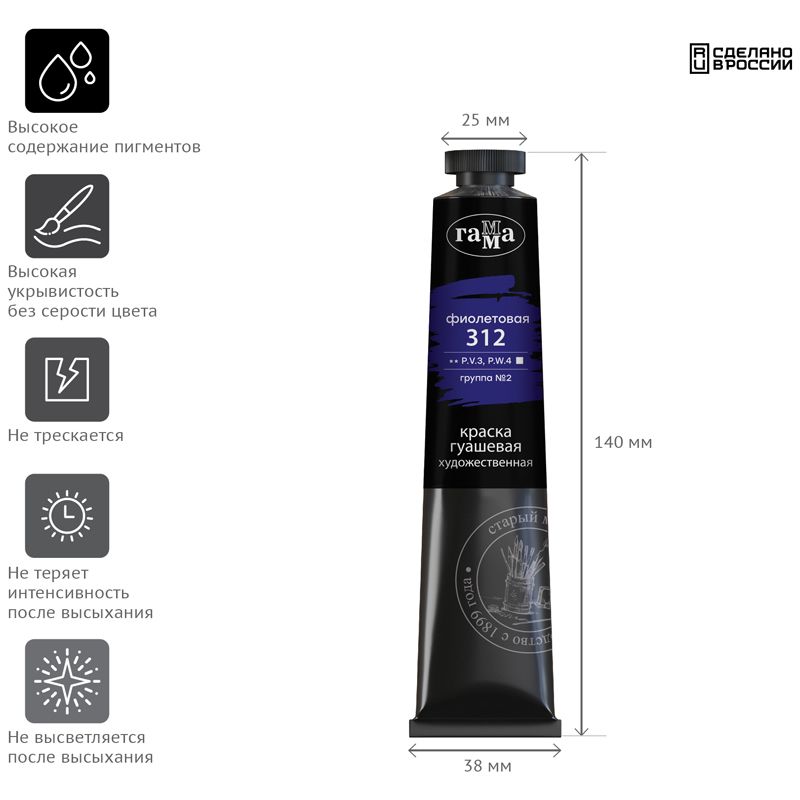 Гуашь художественная Гамма "Старый Мастер", фиолетовая, 46мл, туба