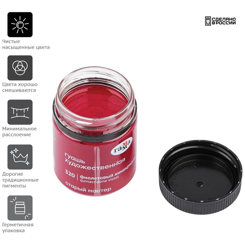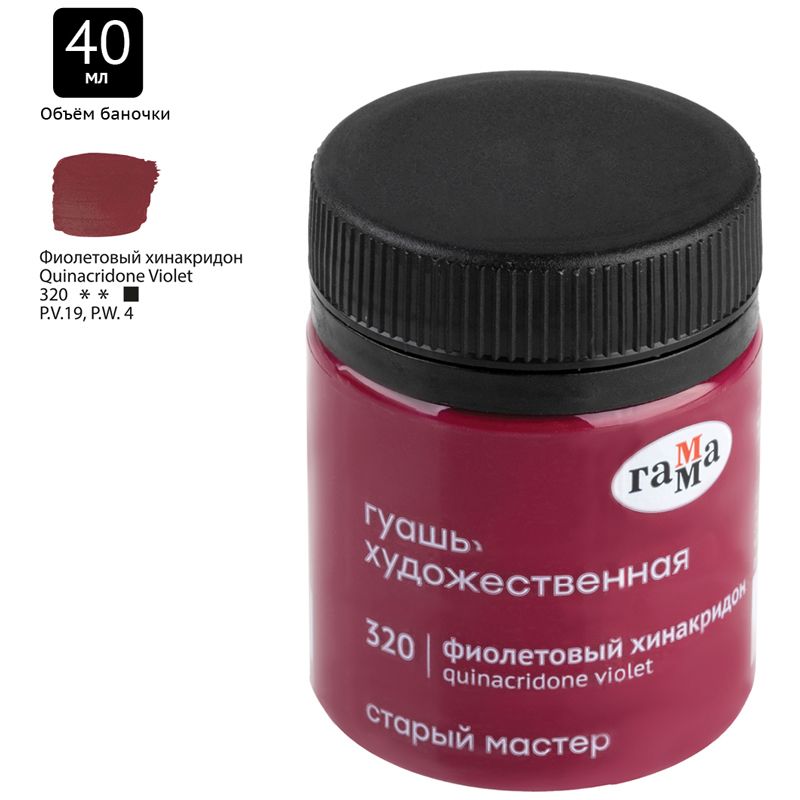 Гуашь художественная Гамма "Старый Мастер", фиолетовый хинакридон, 40мл