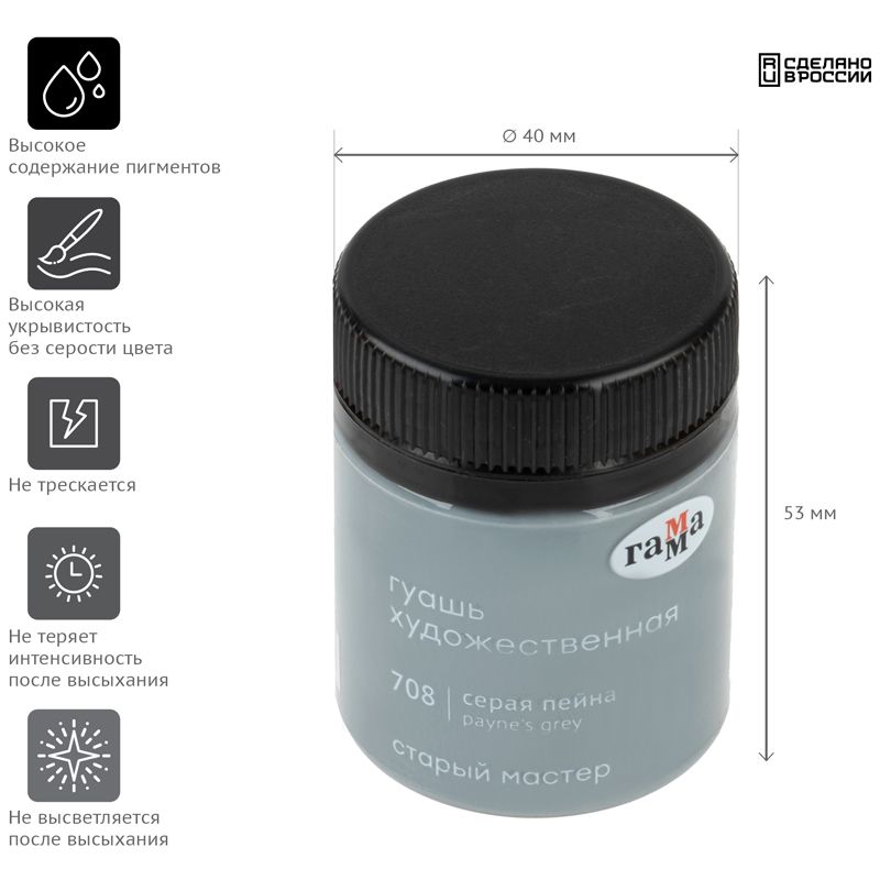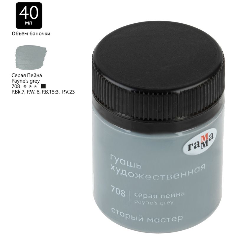 Гуашь художественная Гамма "Старый Мастер", серая пейна, 40мл