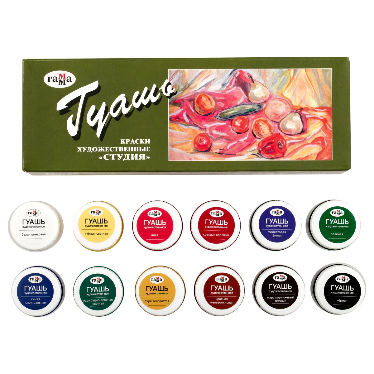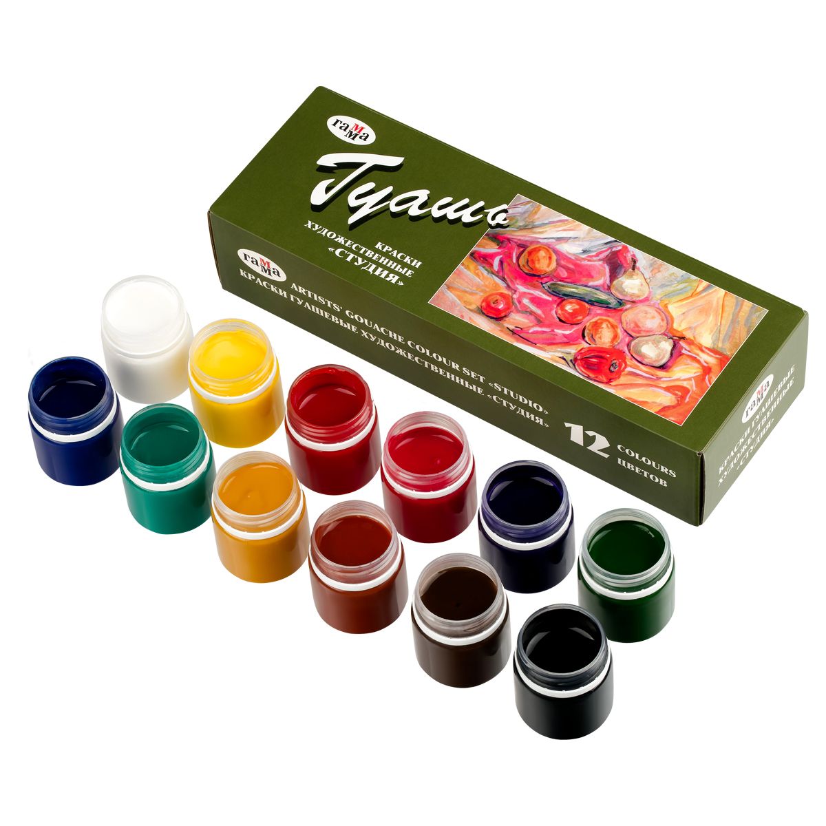 Гуашь художественная Гамма "Студия", 12 цветов, 40мл, картон. упаковка