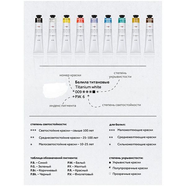 - Белые основы и модификаторы — титановый, цинковый белый и другие средства, которые используются для осветления и изменения консистенции.