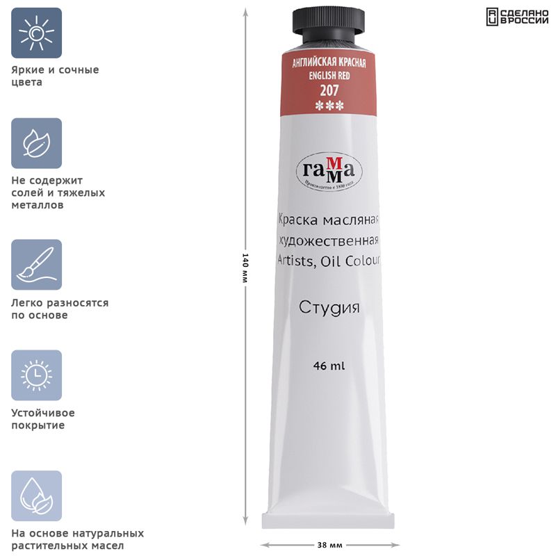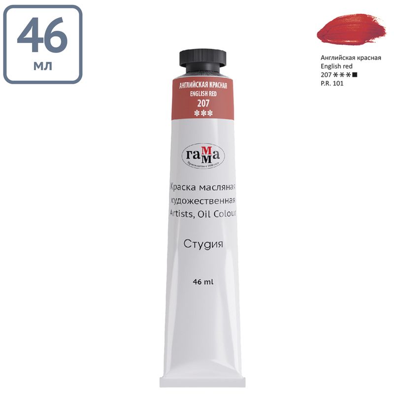 Краска масляная художественная Гамма "Студия", 46мл, туба, английская красная