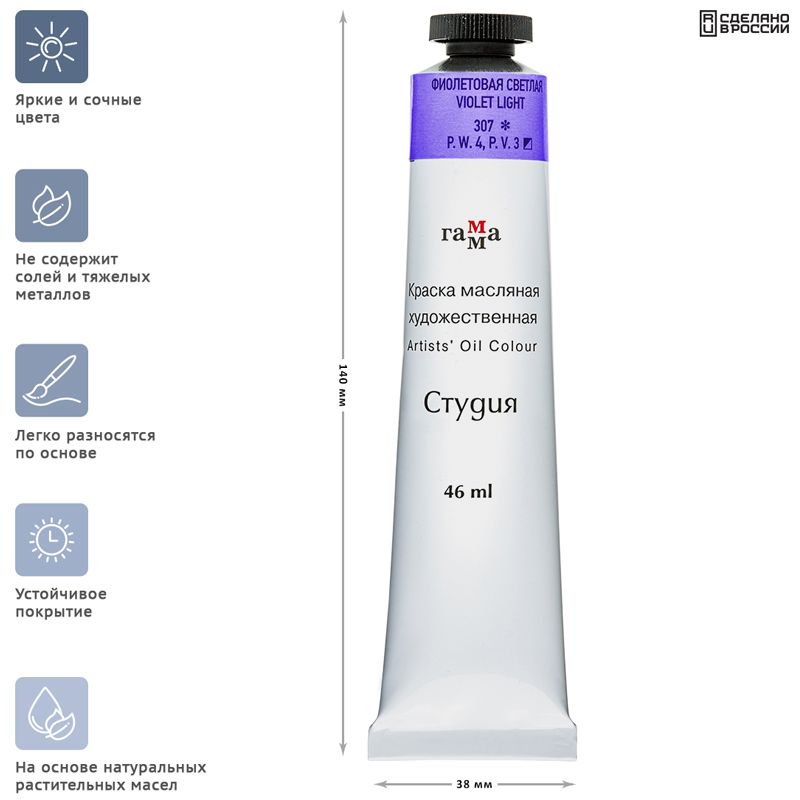 Краска масляная художественная Гамма "Студия", 46мл, туба, фиолетовая светлая
