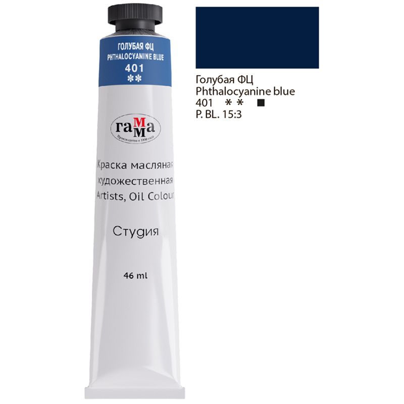 Краска масляная художественная Гамма "Студия", 46мл, туба, голубая фц