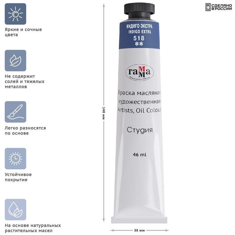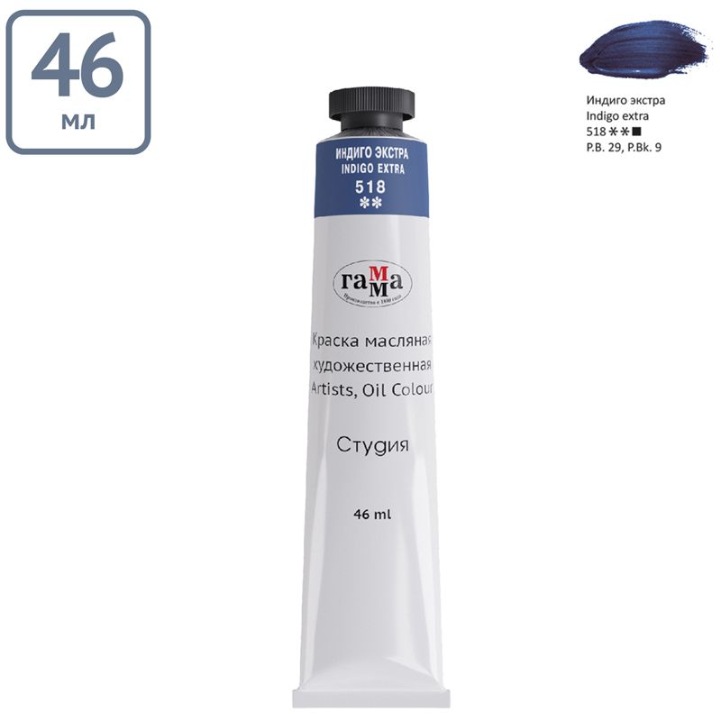Краска масляная художественная Гамма "Студия", 46мл, туба, индиго экстра