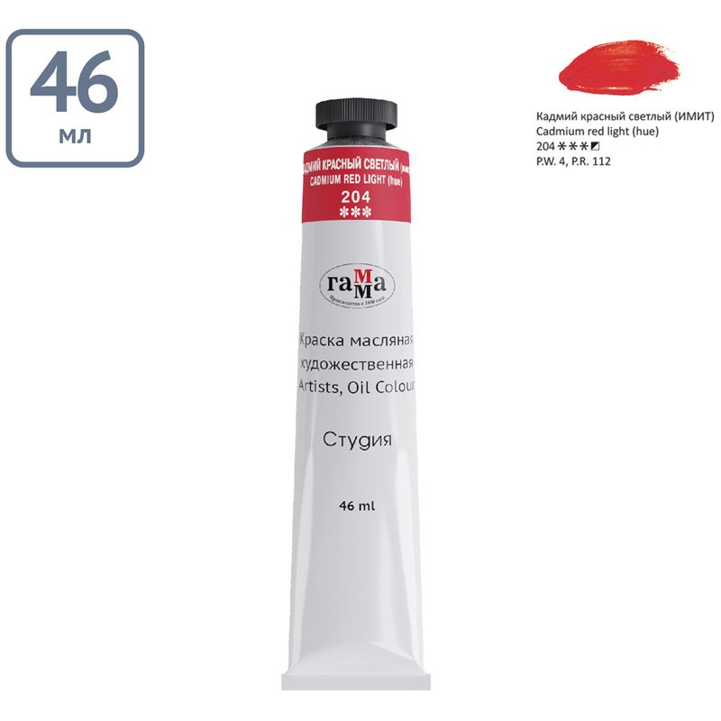 Краска масляная художественная Гамма "Студия", 46мл, туба, кадмий красный светлый (имит.)