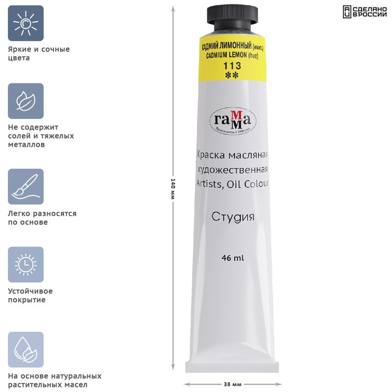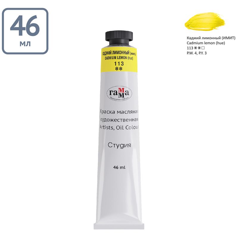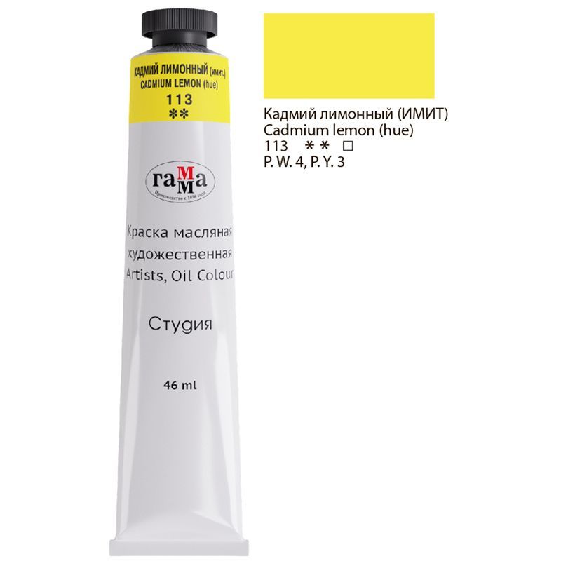 Краска масляная художественная Гамма "Студия", 46мл, туба, кадмий лимонный (имит.)