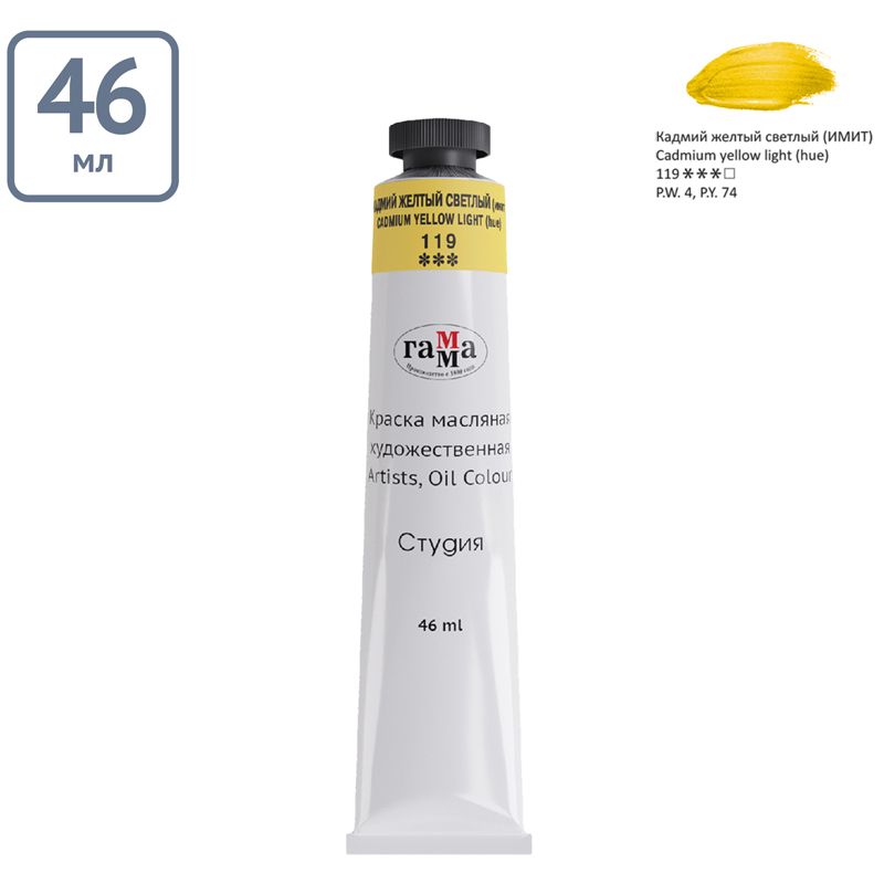 Краска масляная художественная Гамма "Студия", 46мл, туба, кадмий желтый светлый (имит.)