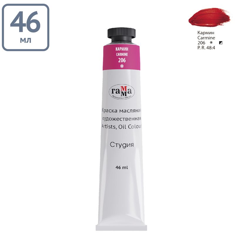 Краска масляная художественная Гамма "Студия", 46мл, туба, кармин