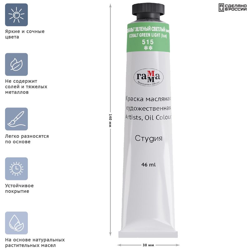 Краска масляная художественная Гамма "Студия", 46мл, туба, кобальт зеленый светлый (имит.)