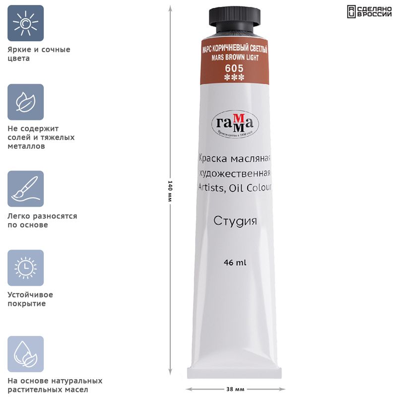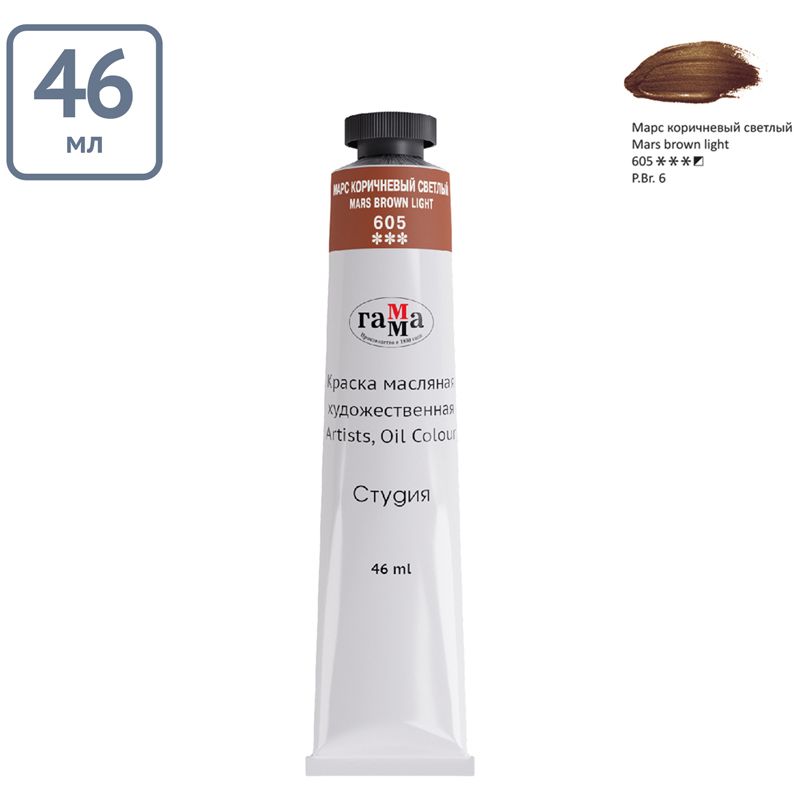 Краска масляная художественная Гамма "Студия", 46мл, туба, марс коричневый светлый
