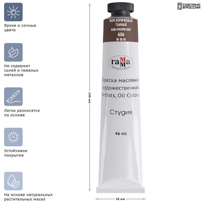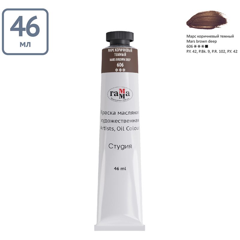 Краска масляная художественная Гамма "Студия", 46мл, туба, марс коричневый темный
