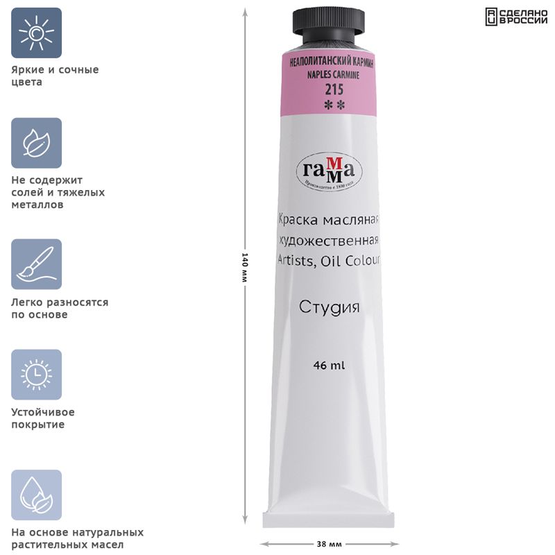 Краска масляная художественная Гамма "Студия", 46мл, туба, неаполитанский кармин