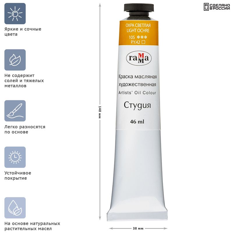 Краска масляная художественная Гамма "Студия", 46мл, туба, охра светлая